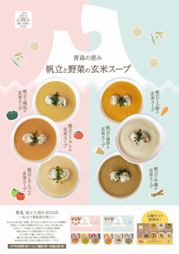 青森の恵み帆立と野菜の玄米スープ 6種セット販売中です